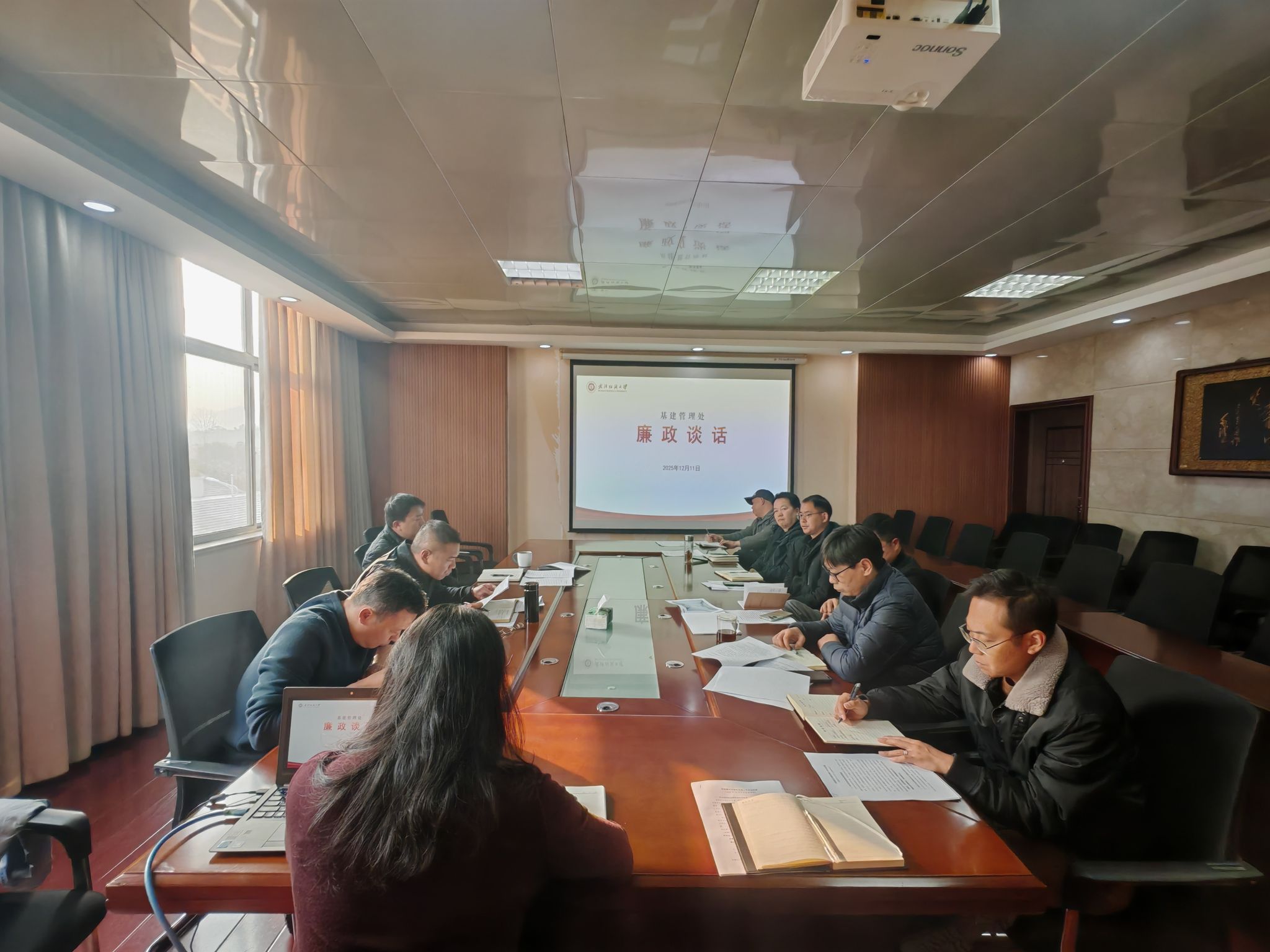 为进一步强化基建干部廉洁自律意识,筑牢拒腐防变思想防线,12月11日下午,基建处组织开展廉政集体谈话暨警示教育活动。基建处处长武猛主持会议并作廉政谈话,全处人员参加会议。