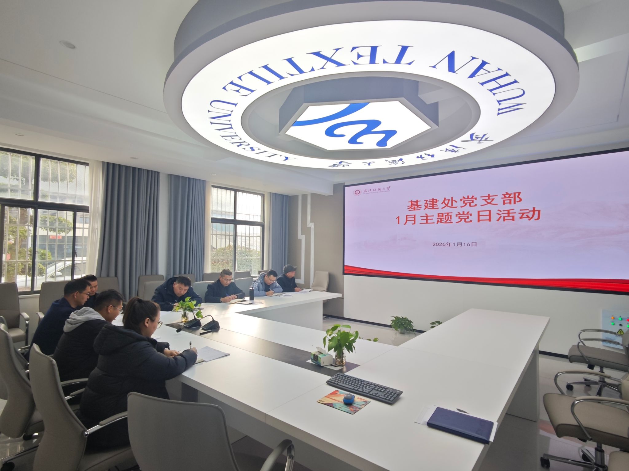 1月16日,基建处党支部在后勤楼一楼会议室组织开展主题党日学习活动,集中学习习近平总书记《学习好贯彻好党的二十届四中全会精神》重要文章、二十届中央纪委五次全会精神及中共中央政治局民主生活会精神,推动理论学习入脑入心、落地见效。活动由党支部书记武猛主持,全处同志参加学习。