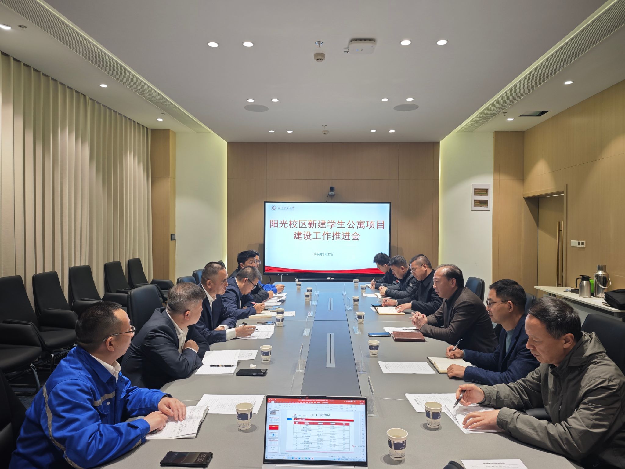 3月27日上午,学校在建全会堂南湖厅召开阳光校区新建学生公寓项目建设工作推进会,听取项目工作进展汇报,全面梳理当前存在的困难与问题,统筹部署各项工作,全力督导项目压实各方责任,加快建设进度。校党委常委、副校长冯军出席会议并讲话。中国五冶集团有限公司党委委员、副总经理王玉贵及有关负责人,湖北合联工程管理有限公司监理团队,学校办公室、基建处等部门有关人员参加会议。
